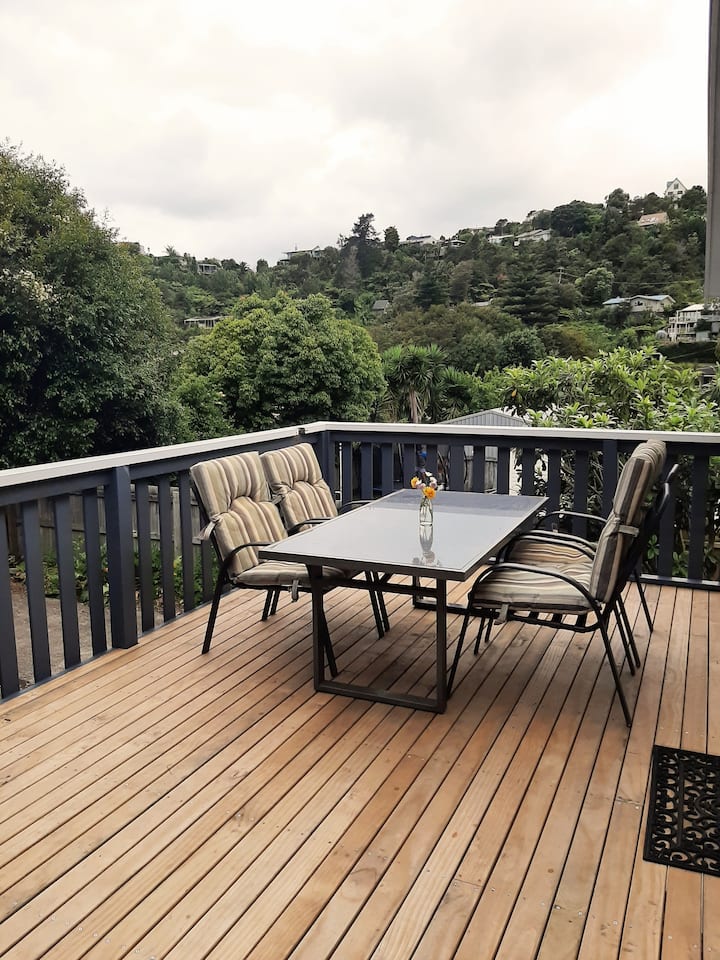 - Shtëpi pushimesh me ndenjëse në ambientin e jashtëm në Tairua