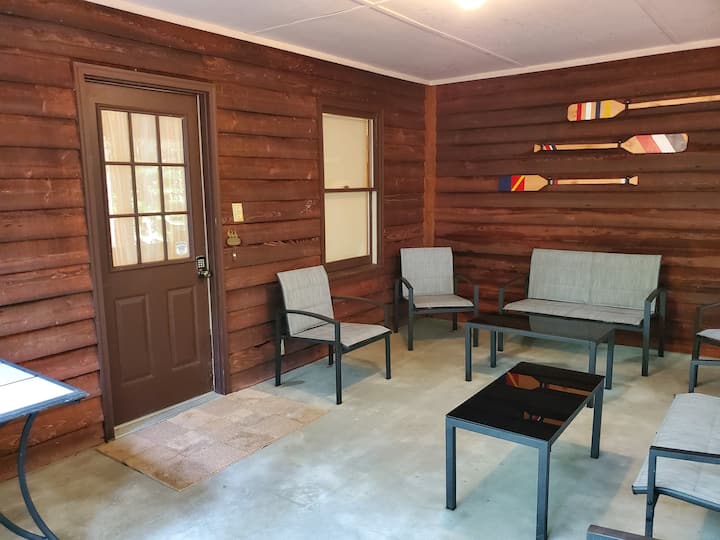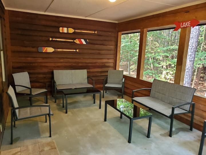 Kjo shtëpi e mobiluar e thjeshtë buzë ujit ka një verandë të madhe dhe dy veranda të mbuluara për t'u çlodhur jashtë