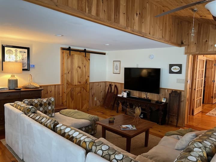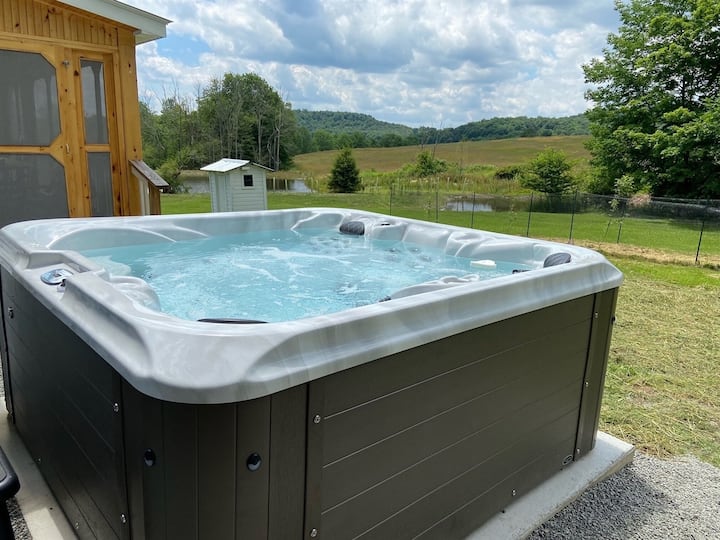 Shtëpia në fermë ofron bukuri dhe qetësi të paimagjinueshme në malet Catskill me shërbime luksoze, duke ofruar një përvojë vërtet të ngritur. Kjo fermë rustike por moderne u ofron vizitorëve një përzierje të përsosur të sharmit, rehatisë, luksit dhe qetësisë. Ferma jonë mbi 12 hektarë krenohet me lule të egra, pyje, pellgje, kullota dhe një lëndinë. | Verandë e kontrolluar | Kuzhinë moderne | 3 ambiente ngrënieje | Wifi i shpejtë | Ajër i kondicionuar qendror | Vaskë me hidromasazh | 2 gropa zjarri | gjenerator shtëpie Një PËRVOJË ME 5 YJE NGA TË GJITHË VIZITORËT!