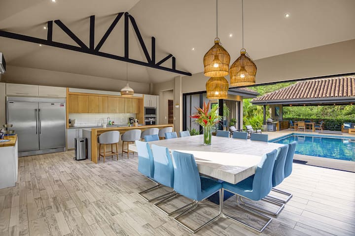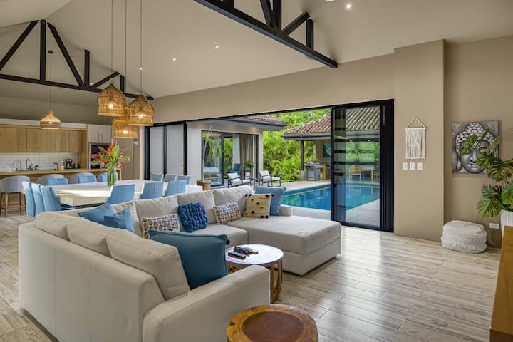 shtëpi moderne tropikale e frymëzuar nga natyra që e rrethon. Ky çift krijon hapësirën për një pushim që nuk do ta harrosh. Eksploro plazhe boshe, sërf me valë të klasit botëror, çlodhu buzë pishinës në klubin e plazhit, katering privat, masazhe në vilë, lundrim në perëndim të diellit, golf buzë plazhit, gjithçka është këtu në pragun tonë!