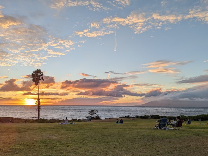 Shtëpia jonë është një vendndodhje qendrore, përballë rrugës nga Kamaole 3 Beach Park, e famshme për perëndimet e saj epike të diellit dhe pranë Kihei Boat Ramp për udhëtime me zhytje në Molokini dhe vëzhgimin e balenave në dimër. Jemi gjithashtu 5 minuta me makinë deri në plazhet Wailea dhe Keawakapu, fantastike për të bërë banja dielli në rërë të artë, për të hipur në dallgët e buta dhe për fëmijët që të luajnë në pishinat e saj të cekëta.