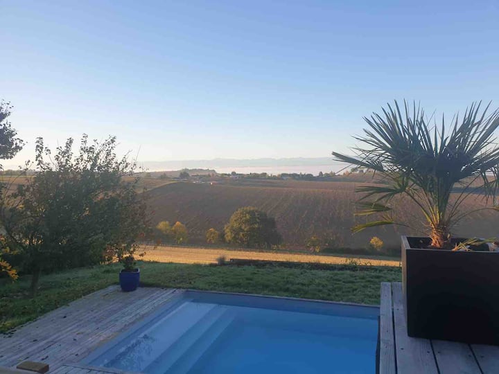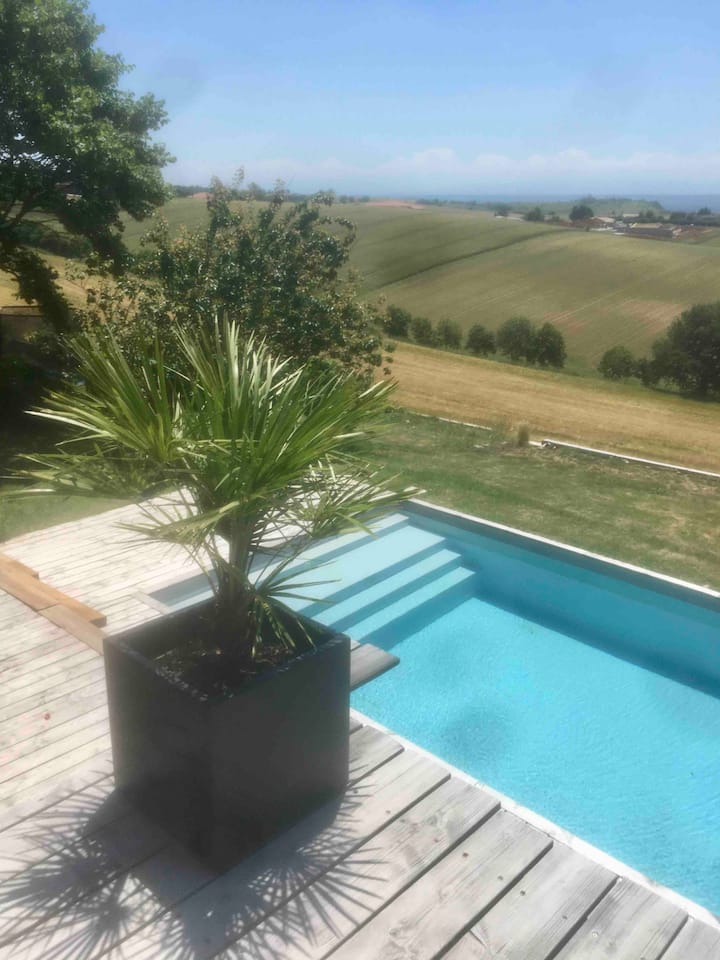 Vilë e bukur me pishinë me pamje nga Pirenejtë