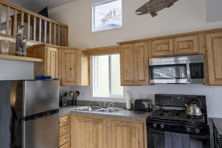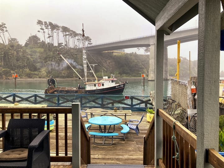 Shfrytëzoje ditën në "Boat House", shtimi më i ri i flotës sonë të shtëpive të vogla që ndodhen në ujë në portin Noyo. Kuverta e përparme zbret 6 hapa poshtë në skelë.