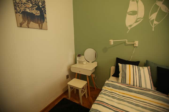 Një dhomë me wifi që është e përshtatur mirë për punë.