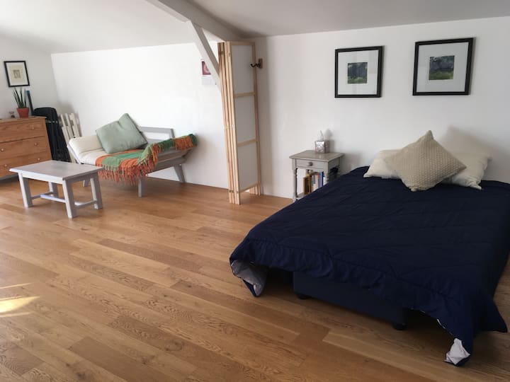 Studio e gjerë dhe e qetë 2,5 km nga plazhi