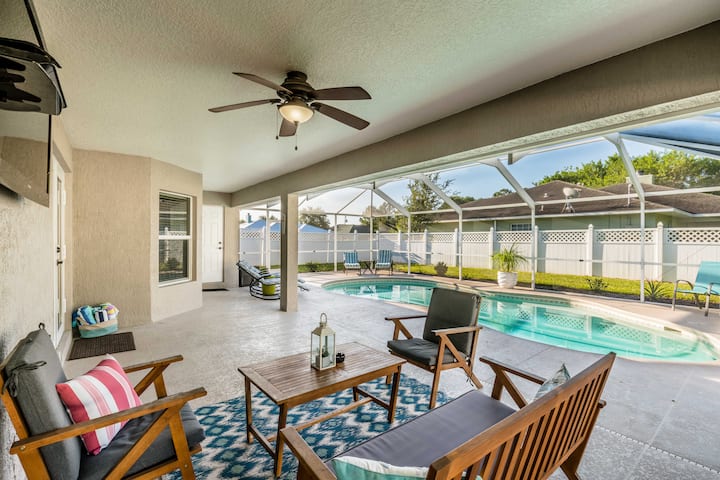 Palm Paradise! Pishinë me ngrohje, TV Lanai, Oborr me gardh!