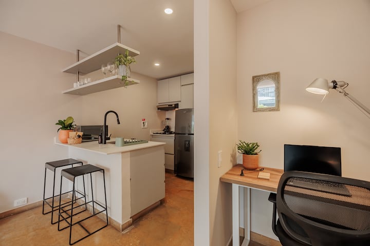 Studio në qendër të Poblados me ajër të kondicionuar dhe tarracë.