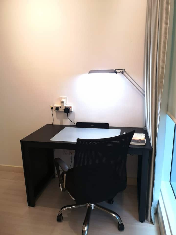 Një dhomë me wifi që është e përshtatur mirë për punë.