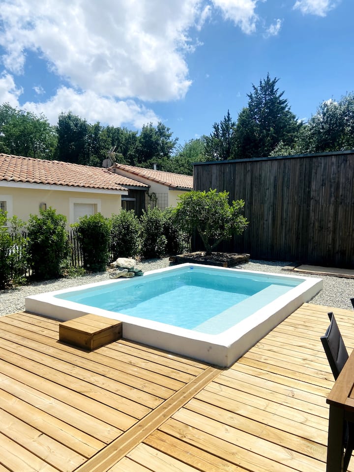 Shtëpi komode me pishinë midis tokës dhe detit