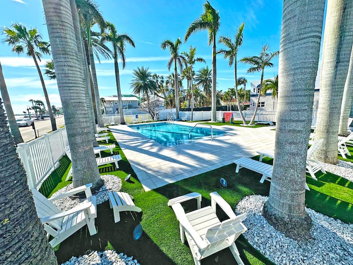 Pishinë e re! Parkim falas! Bikes! Historic Downtown Pass a grille's La Tortuga Boutique Vacation Rentals! Kjo ndërtesë historike e vitit 1925 e njohur më parë si Apartamentet Detare, është modernizuar, përditësuar dhe përmirësuar plotësisht, për ta bërë atë xhevahirin e kurorës së Ave të 8-të të njohur si plazhi më i vogël në qendër të qytetit në Amerikë! Ofrojmë një pishinë të madhe me karrige Adirondack, shezlongë dhe tavolinë ngrënieje. Stacion për skarë me dy tavolina pikniku pas ndërtesës dhe 10 biçikleta plazhi për të parët që vijnë