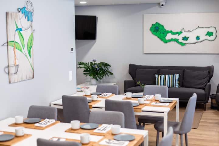 Hostel & Suites Island e çon konceptin e hostelit modern në një nivel tjetër dhe vendos një standard të ri për akomodime të bollshme dhe mikpritëse. Akomodimi me 30 shtretër, ndodhet në zemër të qendrës historike të Ponta Delgada, pranë rrugës kryesore të Tregtisë Tradicionale, Rua Machado dos Santos, si dhe 900M nga Kopshti Botanik António Borges dhe 4.4 km nga Aeroporti João Paulo II.