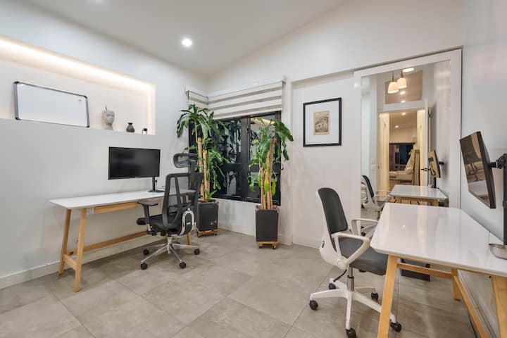Një dhomë me wifi që është e përshtatur mirë për punë.