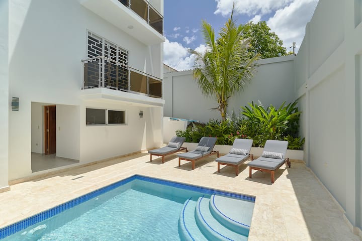 Apartament me 2 dhoma gjumi me pishinë pranë plazhit
