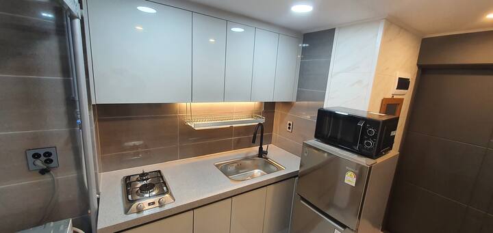 Prezantojmë Inn Hotel për të ofruar "rehatinë e një dhome gjumi master" me një çmim të përballueshëm. Ndodhet 1 minutë e 30 sekonda më këmbë nga stacioni i Universitetit të Malit Dongbu, kështu që është një hotel i përshtatshëm. U rihap pas rinovimit në prill 2018 dhe ambienti i brendshëm modern dhe elegant me pika ndijore të jep një ndjesi të rehatshme dhe komode. Ajo ka aksesueshmëri të mirë në rrugën kryesore, siç janë tregjet në afërsi, dyqanet e komoditeteve, stendat e taksive dhe parkingjet publike dhe ndodhet ngjitur me Universitetin Dongbu Mountain dhe Kampusin Haeundae të Universitetit Yeongsan, kështu që është e përshtatshme të lëvizësh kur viziton. Është e pajisur plotësisht për udhëtarët, duke përfshirë një krevat të vogël mbretëror, një mini frigorifer dhe internet me shpejtësi të lartë.