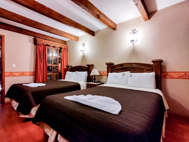 Suitë komode e dekoruar sipas stinës së vitit, ato kanë banjon e tyre me detaje në Talavera, ekran plazma me sistem kabllor dhe navigim në internet, ngrohje në stinën e dimrit, aparat kafeje, kasafortë, orë alarmi, tharëse flokësh, të gjitha janë të shtruara me qilim dhe duke u kujdesur për çdo detaj për t'u ofruar atyre një shërbim cilësor dhe pastrimi, ato janë ndërtuar rreth kopshteve të bukura, ndriçimi i llambave dhe farkëtarët artizanë të harkuar krijojnë një atmosferë të ngrohtë dhe komode.Një suitë shumë e veçantë në stilin kolonial Hermosa, në të cilën mund të shijosh shërbime të shkëlqyera, një xhakuzi, dhomë ndenjjeje, ekran plazmë me sistem kabllor dhe navigim në internet, frigorifer-bar, aparat kafeje, kasafortë, në të njëjtën mënyrë është plotësisht e shtruar me tapet, duke llogaritur me të gjitha detajet në mënyrë që qëndrimi yt të jetë i rehatshëm, i këndshëm dhe i paharrueshëm.