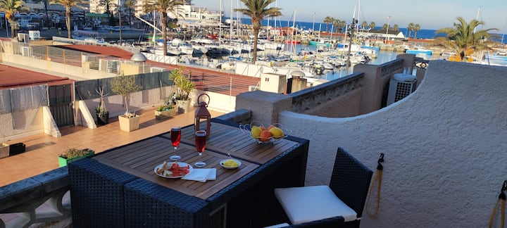 Në port, pamje nga deti dhe mali