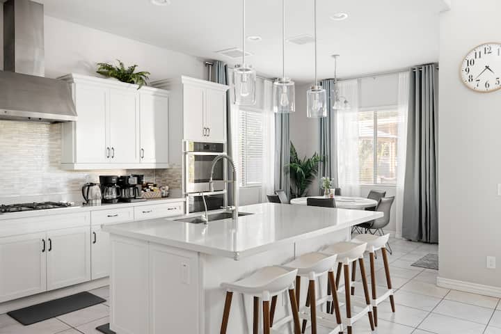 Mirë se erdhe në The Comfort Zone në Westgate! Shtëpia e familjes tënde larg shtëpisë, ky pushim me 5 dhoma gjumi/4 banjo ofron një pishinë me ngrohje (65/në natë sipas kërkesës), dhomë të shkëlqyer, hapësira të gjera ndenjjeje dhe detaje të kujdesshme për një qëndrim të rehatshëm. Vetëm disa minuta nga Westgate Entertainment District, State Farm Stadium dhe Tanger Outlets, do të shijosh darka, blerje dhe argëtim pa fund. Relaksohu pranë pishinës ose eksploro Glendale me familjen dhe miqtë, rehati dhe komoditet të gjitha në një vend.