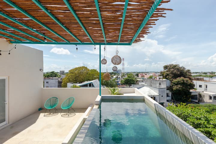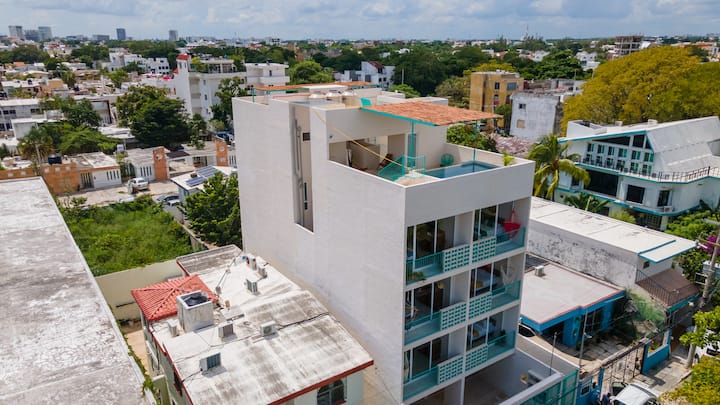 Loft i bukur 7 në qendër të Kankunit me pishinë dhe ballkon.