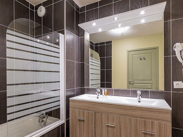 Apartament me 3 dhoma 68 deri 75 m2. Mobilie të bukura: dhomë ndenjjeje/fjetjeje me televizor (ekran të sheshtë). 1 dhomë me 1 krevat francez. 1 dhomë me 2 krevate. Alcove për të fjetur me 4 ambiente për fjetje. Kuzhinë (enëlarëse, 2 pllaka qelqi qeramike, thekëse buke, ibrik, aparat kafeje elektrik, mikrovalë e kombinuar). Banjë/WC. Ngrohje.