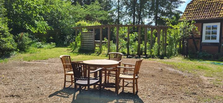 Shtëpi romantike gjysmë e shtruar me pyll