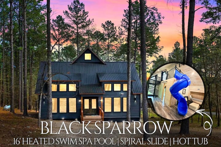 E vendosur në qetësinë e Pyllit Kombëtar Ouachita, Black Sparrow është një vendpushim i nivelit të lartë i projektuar si për kënaqësi ashtu edhe për lojë. Karakteristikat e spikatura të pronës, një banjë noti me ngrohje 16 metra, vaskë me hidromasazh të mbuluar dhe rrëshqitje spirale të brendshme, duke ofruar një përvojë unike si për familjet ashtu edhe për grupet. Me 3 dhoma gjumi elegante "king", një loft me 2 krevate dopio "queen" dhe 3 banja e gjysmë, kabina strehon rehat deri në 16 vizitorë. Duke përzier një dizajn me koncept të hapur me luksin modern, Black Sparrow është arratisja jote private në çlodhje dhe argëtim në anën e pyllit.