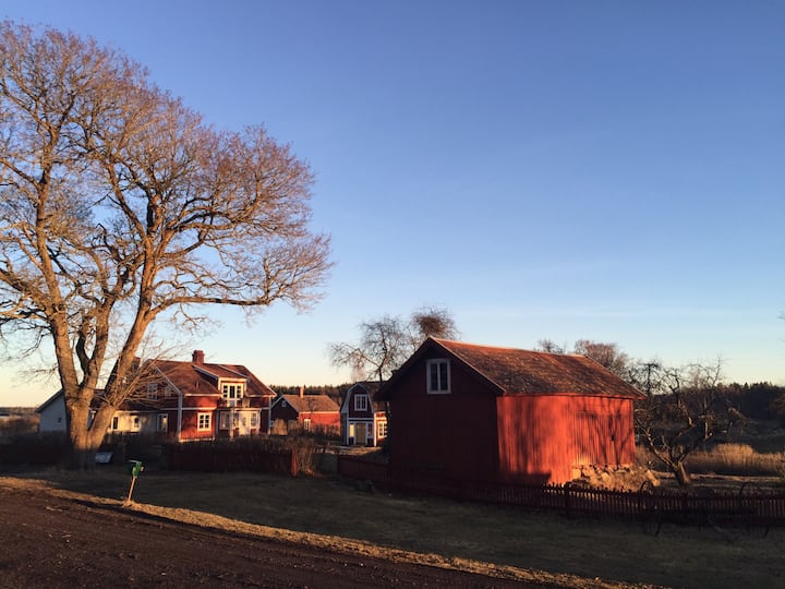 Ne - Fia dhe Leif - jetojmë në një fermë jashtë Uppsalës dhe kemi një fermë të vogël organike në shkallë të vogël me një tufë delesh, disa kuaj dhe disa lopë. Kemi një vilë fshati të vjetër në truallin tonë që është ndërtuar në vitin 1830 që e japim me qira gjatë verës. Këtu jetojmë në fund të rrugës, pranë kafshëve dhe natyrës. Është një vend i këndshëm për të qëndruar, mendojmë. Mirë se erdhe këtu!