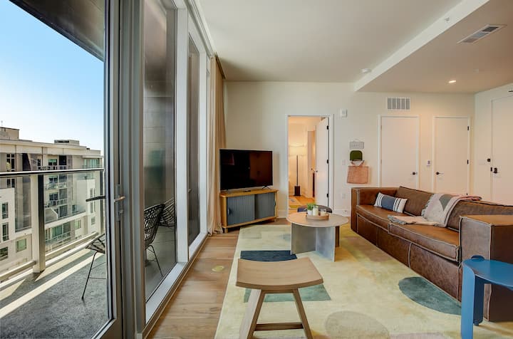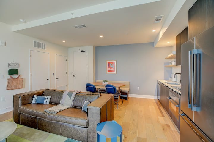 Penthouse 2BR e përshtatshme për qentë me pishinë dhe palestër në çati