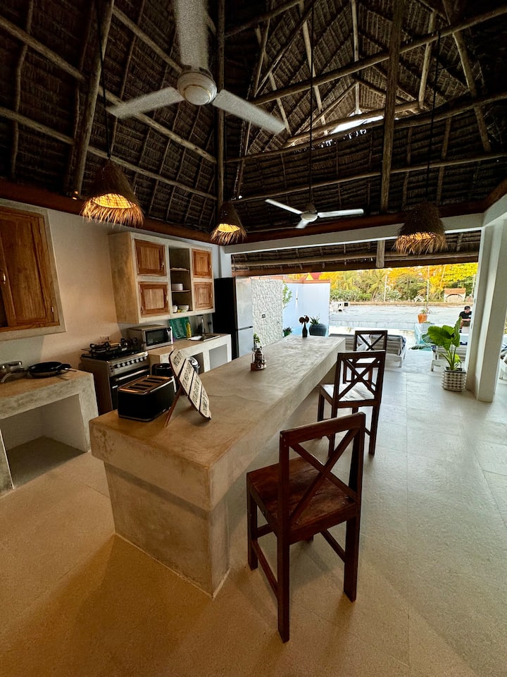 Mirë se vjen në Penthouse Private Paje, arratisja jote e fundit në ishull në zemër të Paje, Zanzibar! Vetëm 60 metra larg plazhit, kjo apartament i gjerë dykatësh kombinon sharmin autentik të ishullit me luksin modern, të përsosur për familjet, çiftet dhe grupet e miqve. Nuk ka tarifa të fshehura. Ti paguan atë që sheh!