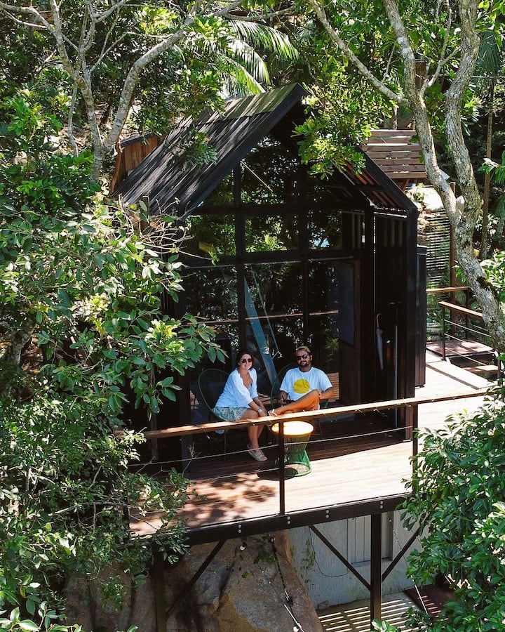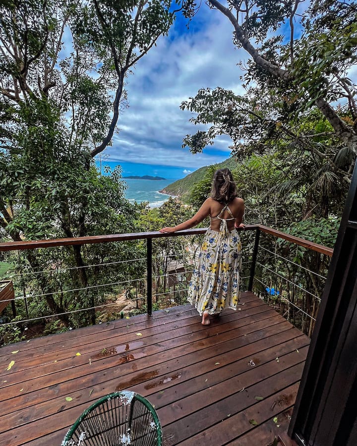 Në vitin 2013 u transferova në Florianópolis, qyteti i lindjes së burrit tim, një vend i mahnitshëm, me një natyrë të harlisur dhe plazhe të mrekullueshme, siç është plazhi i Solidão, i cili është streha jonë për t 'u shkëputur nga dita në ditë dhe për t' u lidhur me natyrën.