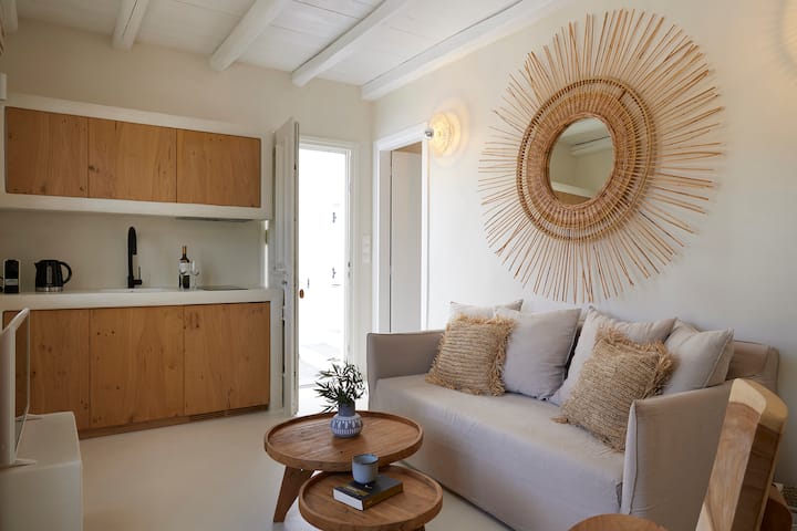 Kjo banesë është mu buzë plazhit "Platis Gialos Beach".