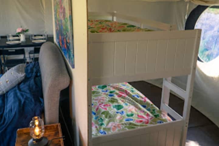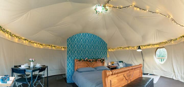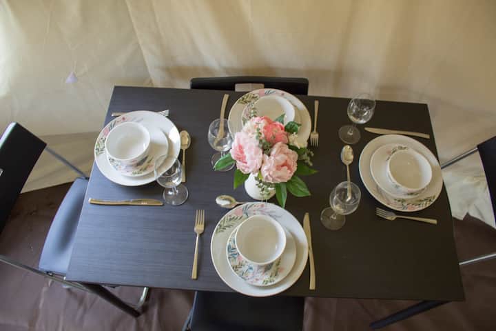 Yurt me pamje nga lumi dhe vaskë të nxehtë
