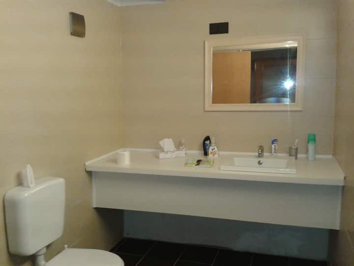 Një dhomë me wifi që është e përshtatur mirë për punë.