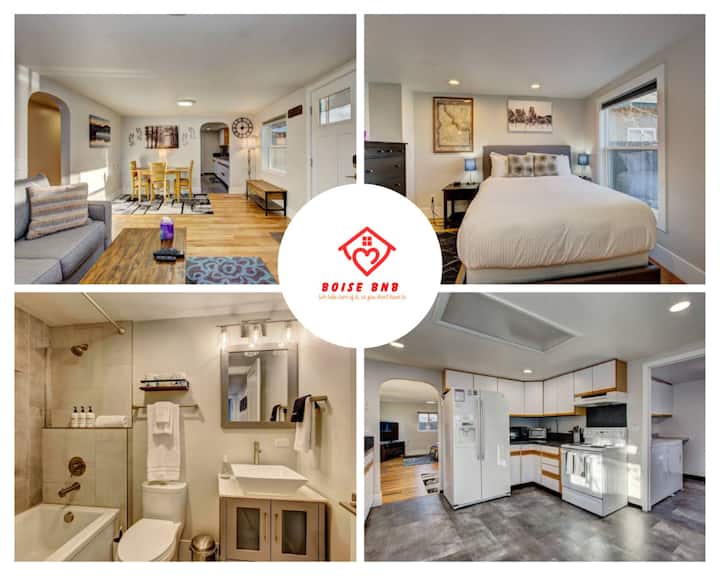 Bungalow i vogël blu është një vend i rehatshëm, i përshtatshëm për kafshë shtëpiake në Boise, vetëm disa minuta nga qendra e qytetit, BSU dhe aeroporti. Shijo një oborr plotësisht të rrethuar me derë për qentë, ulëse në oborr dhe peizazhe të bukura. Brenda ka një dhomë gjumi me krevat dopio "queen", një divan dopio "queen", televizor 55" 4K, Wi-Fi me fibra të shpejtë, hapësirë pune dhe kuzhinë të pajisur plotësisht. Përfshin lavatriçe/tharëse dhe regjistrim të lehtë me vetëshërbim. E përkryer për çifte, familje të vogla, punonjës në distancë dhe udhëtarë me kafshë shtëpiake që kërkojnë rehati dhe lehtësi. 🐾💙