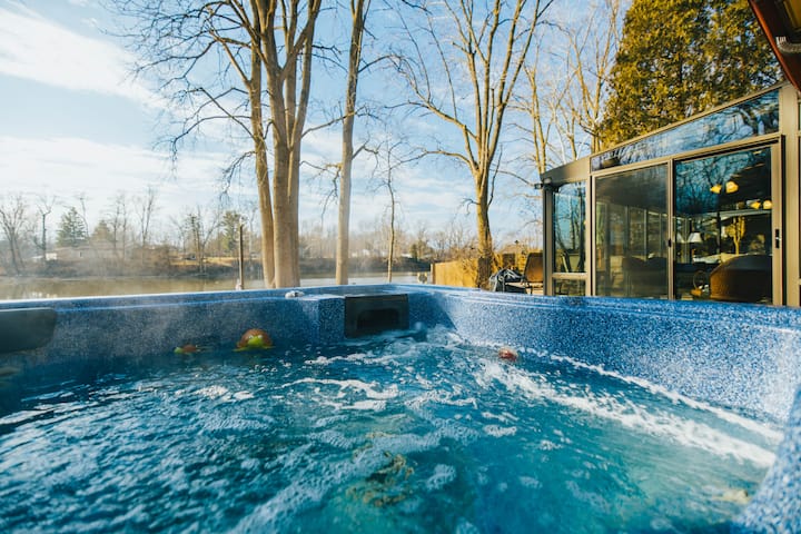 Shtëpi fshati pranë liqenit me vaskë me HIDROMASAZH dhe tavolinë pishine