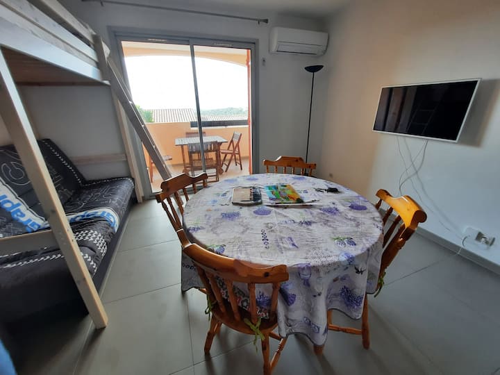 T2 në plazh në një rezidencë të sigurt me pishinë
