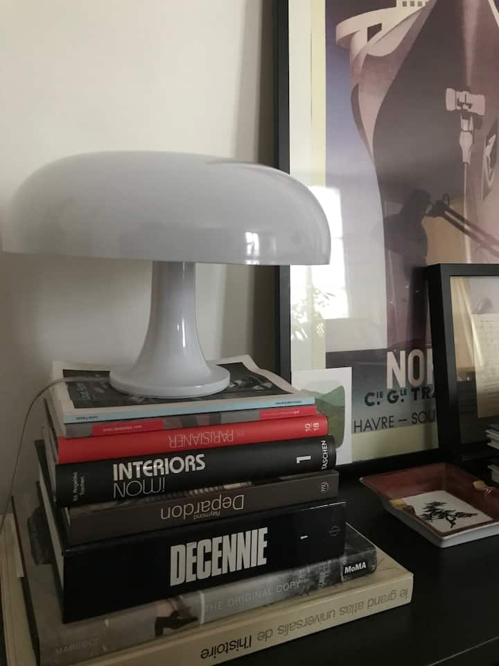 Me dritaret e mëdha franceze me pamje nga perëndimi që hapen në oborrin e qetë të një vile historike, ambienti im është i mbushur me dritë, karakter dhe libra.