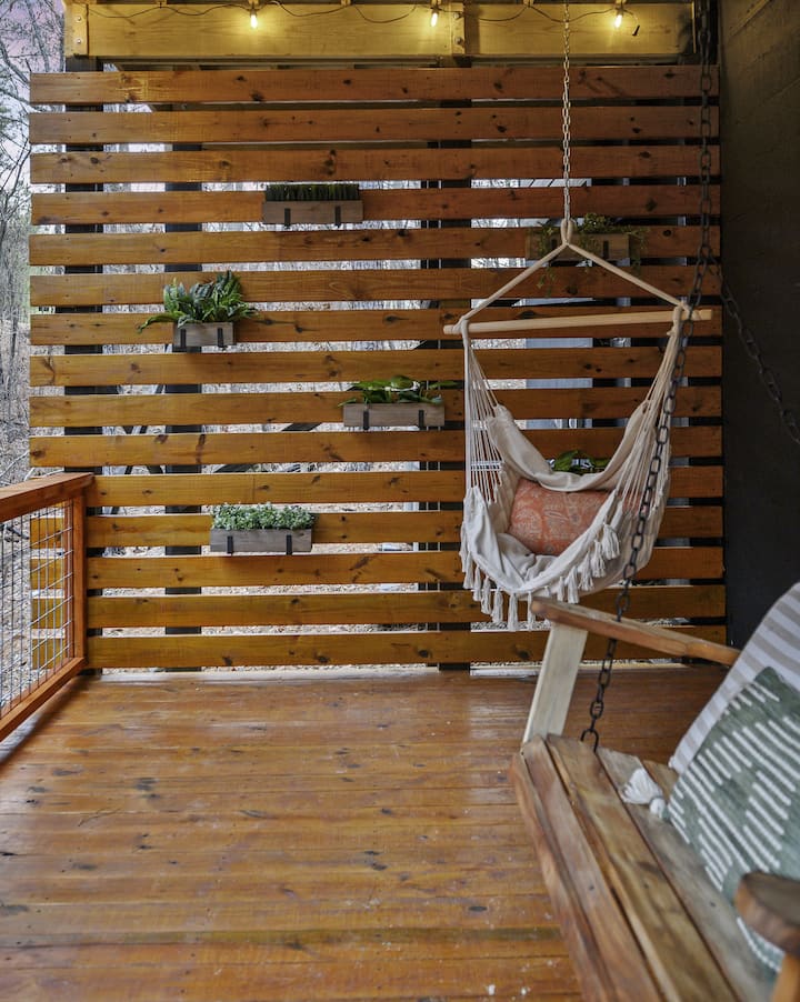 - Shtëpi pushimesh me ndenjëse në ambientin e jashtëm në Hochatown