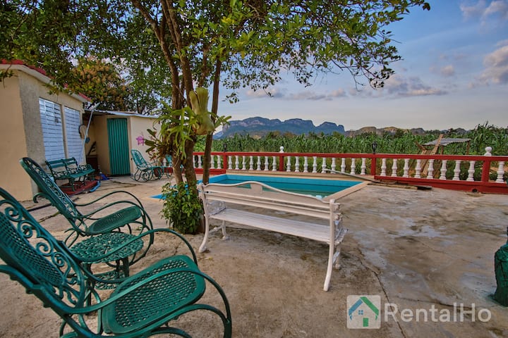 Mirë se vjen në shtëpinë tonë në Viñales, ku mund të përjetosh bukurinë e vërtetë të Kubës. Me pamje mahnitëse të mogotave, shtëpia jonë është vendi i përkryer për t 'i shpëtuar rrëmujës së qytetit dhe për të shijuar qetësinë e natyrës. Nga tarraca jonë e mobiluar, mund të shijosh një mëngjes të shijshëm, duke admiruar pamjet e bukura të plantacioneve të misrit, ose të zhytesh në pishinën freskuese pas shëtitjes në zonë.