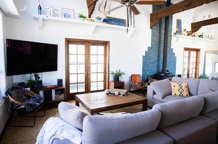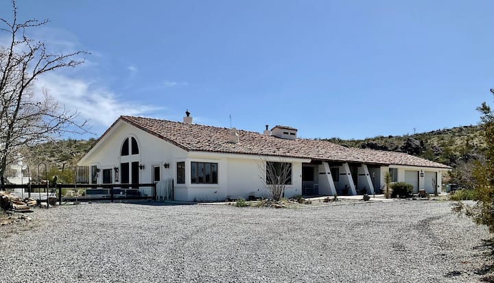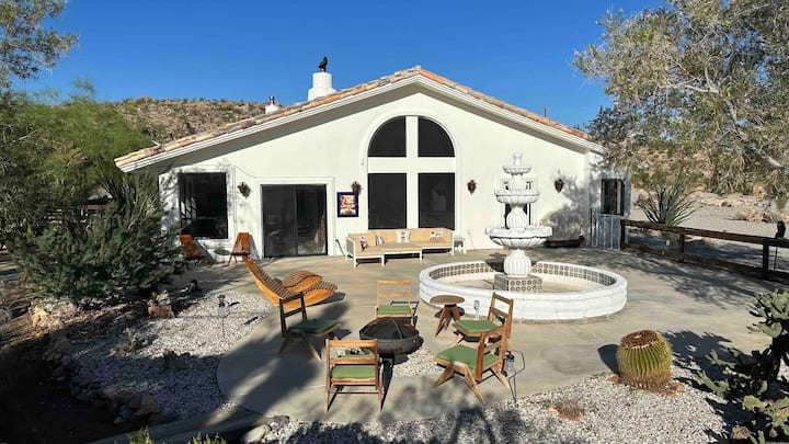 Relaksohu dhe rinohu në këtë pronë të shkëlqyer të stilit spanjoll, e vendosur në një boshllëk privat në Joshua Tree, Kaliforni. Si udhëtarë dhe hostë të pasionuar, jemi krenarë të ofrojmë këtë perlë me 3 dhoma gjumi + den, 2 banjo, të kompletuar me një pishinë të brendshme dhe vaskë me hidromasazh. Ky oaz gjysmë i izoluar është i pajisur plotësisht për rehati dhe argëtim, por larg dritave të qytetit, duke ofruar mundësi të jashtëzakonshme për shikimin e yjeve dhe bashkim me natyrën.