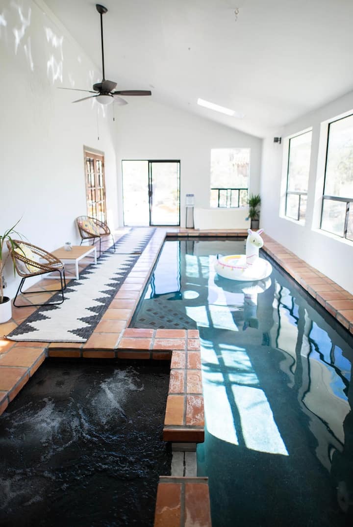 Xhevahiri i kurorës së kësaj shtëpie është pishina e brendshme dhe vaska me hidromasazh, ku mund të notosh, të rrish në sallë pritjeje dhe të relaksohesh gjatë gjithë vitit, pavarësisht motit. Është vendi i përkryer për t 'u çlodhur pas një dite të gjatë eksplorimi të Parkut Kombëtar Joshua Tree aty pranë ose ecjes rreth zonës ngjitur me pronën.