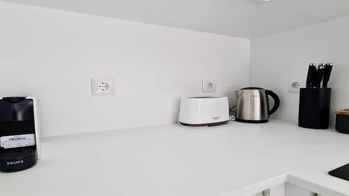 Kuzhina: furrë, pianurë me induksion, enëlarëse, mikrovalë, frigorifer/frigorifer, kazan, toster, makinë kafeje Nespresso, lëng manual agrume, lavatriçe, hekur vertikal.