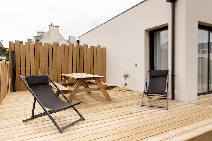 - Shtëpi pushimesh me ndenjëse në ambientin e jashtëm në Ploudalmézeau