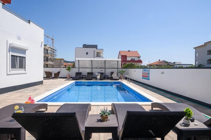 Ky është një nga të paktat ambiente në zonë me pishinë.
