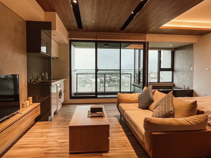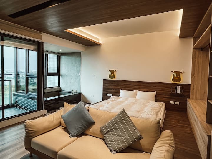 Dhomë elegante me burim të nxehtë @ Yilan Toucheng (1-3 persona)/stil druri/pamje nga mali në ballkon - Pamje nga nata - Pamje nga perëndimi i diellit, 15 tsubo (pishinë e pafundme në katin e sipërm)