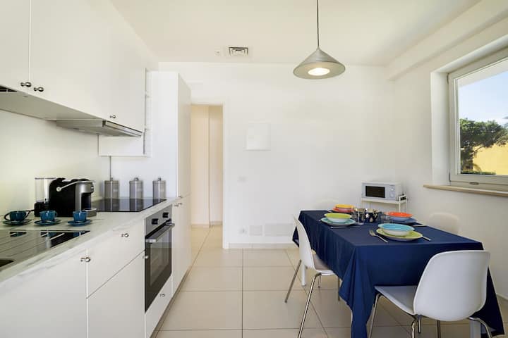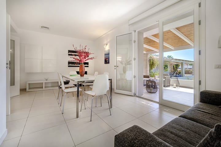 Vila është e pajisur me një parkim privat, duke garantuar kështu një akomodim të rehatshëm dhe të sigurt, pa shqetësime për parkimin dhe automjetet elektrike mund të rimbushen brenda. Hapësirat e brendshme janë projektuar me kujdes për të ofruar një qëndrim funksional dhe mikpritës, ku çdo detaj është projektuar për rehati. Kuzhina e ndenjjes është e pajisur plotësisht, ideale për përgatitjen e pjatave të shijshme për t 'u shijuar në dhomën e madhe të ndenjjes me pamje nga veranda e jashtme ose në ambientin e jashtëm me pamje nga pishina: hapësira e përkryer për dreka dhe darka në natyrë, ku mund të kalosh momente të këndshme në shoqëri, të rrethuar nga gjelbërimi dhe ngjyrat e ujit të pastër si kristali.