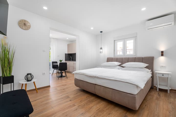Studio Deluxe me pamje të hapur nga deti dhe krevat king size