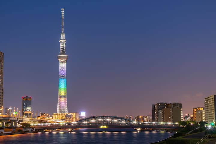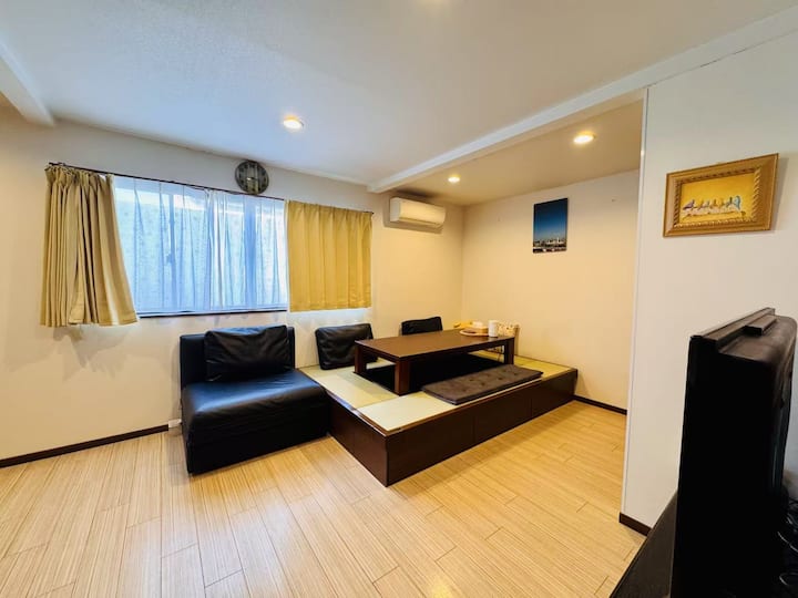 広々リビング¥2寝室・ 5名宿泊 ) )専用バス )トイレ )自炊 OK・スーパー近 )浅草静かな住宅街・バス停すぐ
