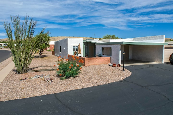 Mbi 55 vjeç, për shkak të rregullave të komunitetit. Ejani të relaksoheni në këtë shtëpi unike dhe të qetë me pamje spektakolare malore. Ndiq pamjet gjithnjë në ndryshim të malit nga veranda e përparme dhe dhoma e ndenjjes. Shijo golf në një nga disa kurset aty pranë.