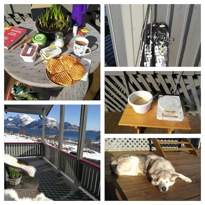 Përshëndetje! Burri im dhe unë jetojmë këtu në Naustvågen. Të dy do të shërbejmë si hostë për vizitorët tanë, kur të jemi në shtëpi. Kemi një mace dhe një qen. Të dy punojnë në Svolvær. Pra, nisemi në orën 7 3 dhe do të jemi në shtëpi rreth orës 16 30 nga e hëna në të premte . Kabina në Storemolla, Raftsundet, do të jetë në dispozicion të vizitorëve. Kontakti do të bëhet nëpërmjet mesazheve.