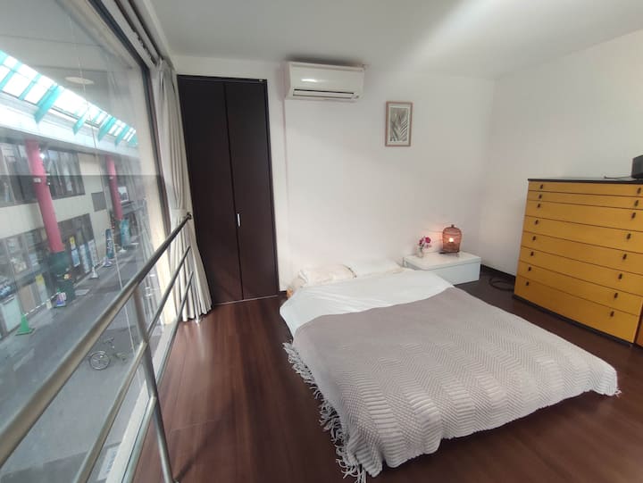 Dhoma kryesore e gjumit është përballë një rruge tregtare direkt nën të gjitha xhamat, kështu që ka zhurmë.